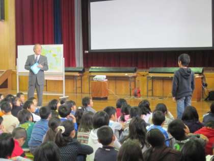 今日の朝会での校長先生のお話は,外国から来て四錦小学校の仲間になった友達の紹介でした。「言葉が通じない国で,一緒に勉強したり遊んだりしている友達のことを想像してみる」「どんな友達がいたら嬉しいと思うかということを,それぞれが想像して,この朝会の間に自分はどうするかということを決めよう」と話されました。朝会が終わったときにも,考えられたかどうかの確かめがありました。これから子どもたちは,どんな姿を見せてくれるでしょうか。