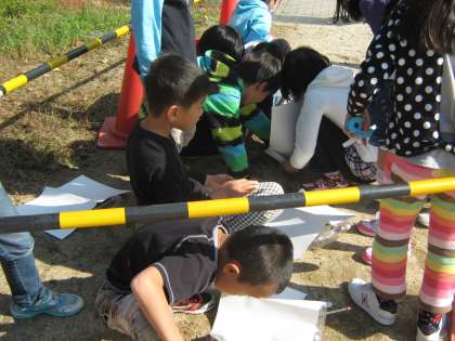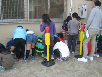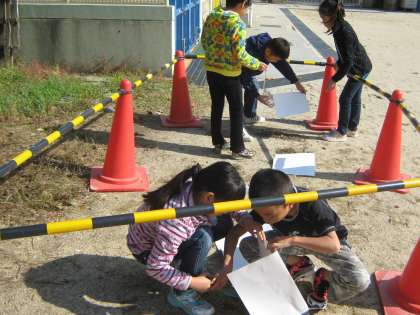 3年生が地面の温度の変化を温度計を使って観察しました。時間の経過によって温度は上がるのか下がるのか,それともあまり変わらないのか。予想をして,結果を確かめる学習をしました。