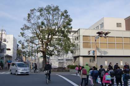 東山通を渡って通学している子どもたちを毎日見守ってくれる大切な木です。