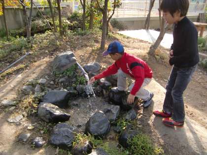 ビオトープの池やせせらぎの水は地下水を汲み上げて使っています。