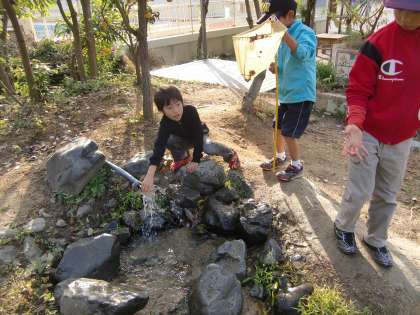 「水源の水,触ってごらん」