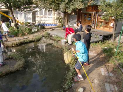 「池の水,触ってごらん」