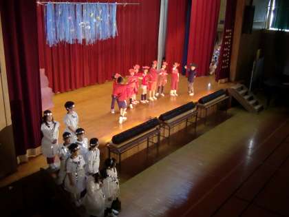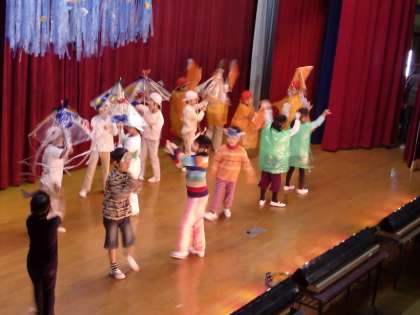 続いて,2年生の劇『スイミー』です。国語の教科書に載っているレオ・レオニという人の有名なお話です。