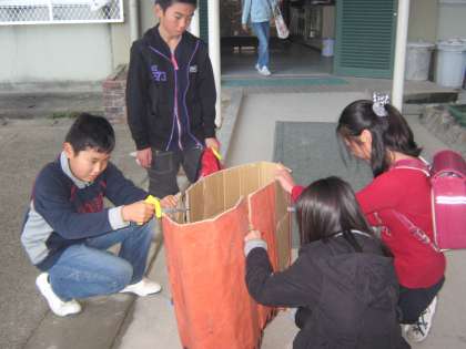 名残惜しくて,下校時間が迫っても大道具から離れることができません。
