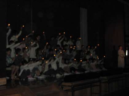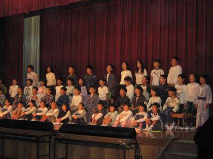 「モチモチの木」が会場にも現れました。ざわざわと豆太を驚かす「モチモチの木」。光を放った「モチモチの木」。表情豊かな「モチモチの木」でした。