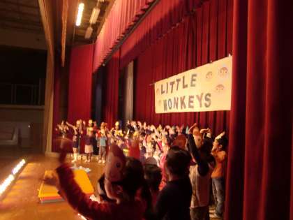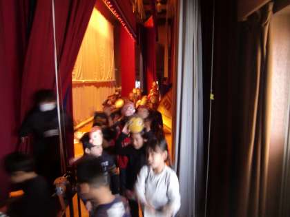 やっと幕が下りて,みんな「ホッ…」。初めてのステージ発表でした。