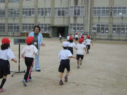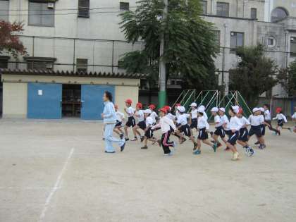 寒くても子どもたちは元気です。今日は準備運動の後に5分間走で体を温めました。1周目は担任がペースを作り,2周目からは自分のペースで走りました。