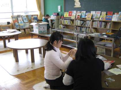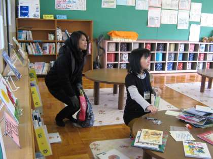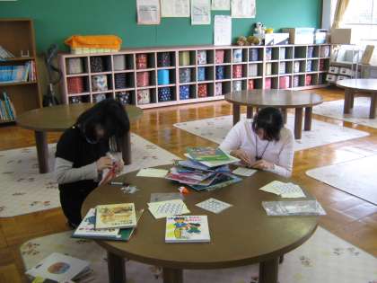 今日は,「わくわくルーム」にある絵本の背ラベルの整備を行ってもらいました。ボランティアのみなんさんのお力で本がきちんと整理さています。