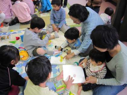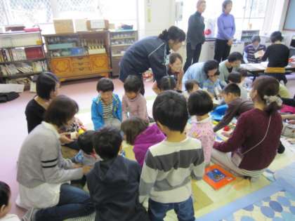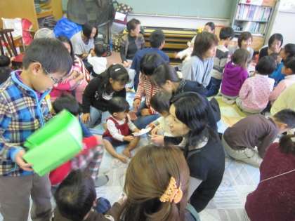 すくすくサロンに来られている就学前の乳幼児さんと1年1組が交流しました。交流する時間は出入りを含めて15分。小さい人を長い時間拘束はできません。1年生は、どうしたら楽しく交流できるか、自分たちが楽しむのではなくどうしたら喜んでもらえるのか、楽しく遊べるのか相手意識を持って考えました。それぞれのグループで、いつもよりお兄さん、お姉さんになって一生懸命交流しているやさしい1年生の姿が見られました。