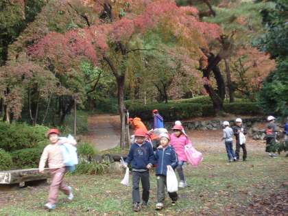 葉っぱが赤くなっていることや,以前よりもどんぐりがたくさん落ちていることなど,前回出かけたときよりも秋が深まっていることを発見できました。たくさん拾ってきてものは,図工や,生活科での学習で楽しむ予定です。