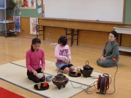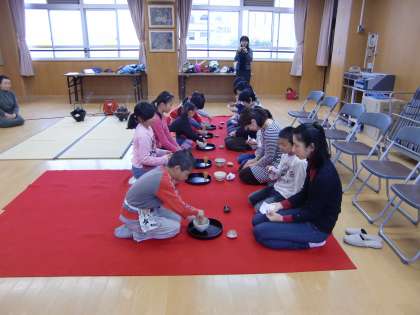 日常,部活動で稽古している子どもたちがお客様をもてなします。凛とした姿はすがすがしさを覚えます。ただ,緊張して,作法の手順があやしくなるような場面もありましたが,心休まるひと時を過ごすことができました。年明けには『初釜』も予定されています。今後ますます精進して心と腕を磨いてほしいと思います。