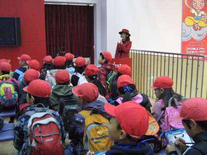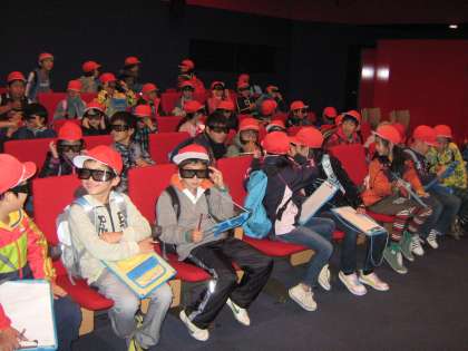 工場の見学にあたり,まず,この工場や製品の歴史などを3Dの映像で体験しました。