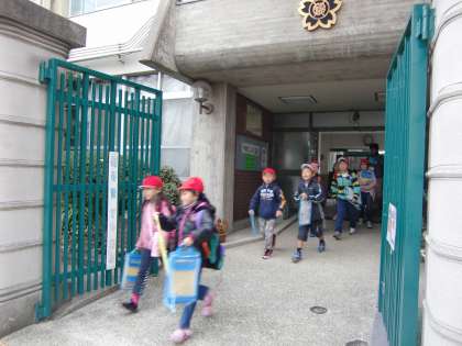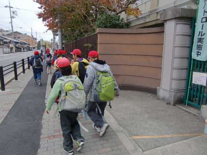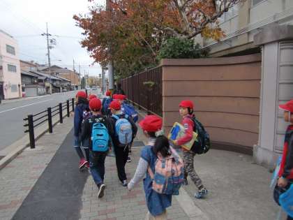 コーラの工場へ出かけていく3年生です。今日は寒いですね。