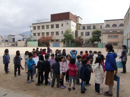 吉田幼稚園との交流会です。幼稚園の後輩たちに小学校のことをたっぷり教えてやってくださいね。よろしく頼みま〜す。