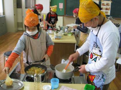 感想を聞いていても,「おいしくできたので家族のために作ってみたいです。」「食べるときには少しさめてしまいました。でも,家で食べるのは温かいまま出てくるので,やっぱりお母さんはすごいと思いました。」など,この実習を通して「家族のために」ということを確認できたと思います。