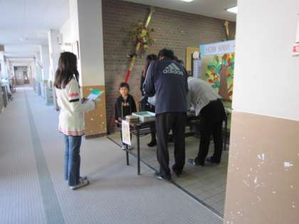 玄関で受付をした後,おうちの方は,2階のふれあいサロンへ,子どもたちは5年生のお兄さんお姉さんと検診場所へと別れました。5年生も懸命に,優しくエスコートし,役目を果たしていました。この子たちが本校に入学する時には,6年生ですから。よく頑張ってくれました。