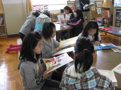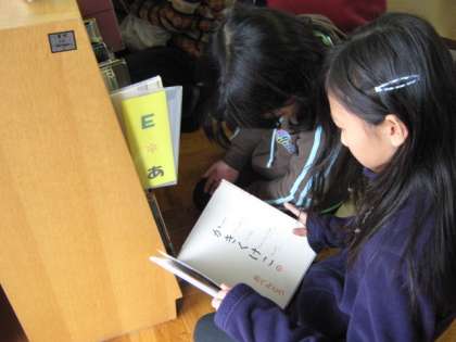 健康診断の待ち時間に絵本の読み聞かせをしようと、わくわくルームへ行きそれぞれが思い思いの絵本を探しました。「どんな絵本がいいかな?」「これ、おもしろそう!」絵本決めたあとは、読み聞かせの練習です。絵本をさがしも読み聞かせの練習も、やわらかい笑顔が印象的でした。