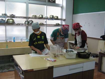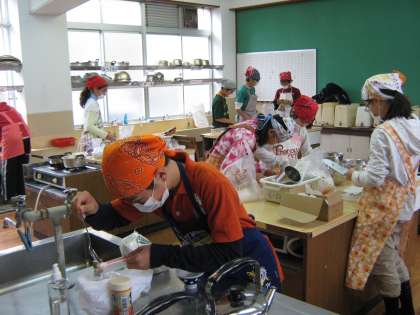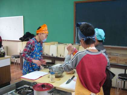 6年生が調理実習をしました。それぞれのグループで決めたものを作りました。とてもおいしくて,給食の分と自分たちの分と完食しました。