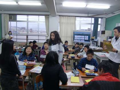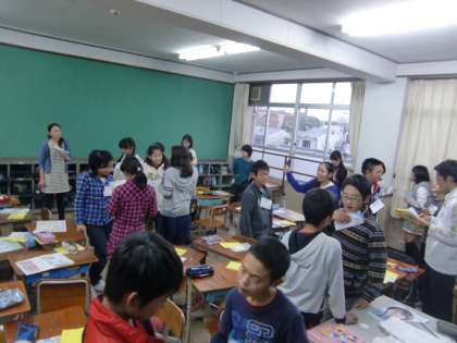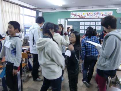 子どもたちがたくさん会話をしています。日本語の会話でも同じですが,恥ずかしがっていたんでは会話はなかなか弾みません。「伝えたいことがある」「伝えたい思いがある」これが最も重要なんでしょうね。