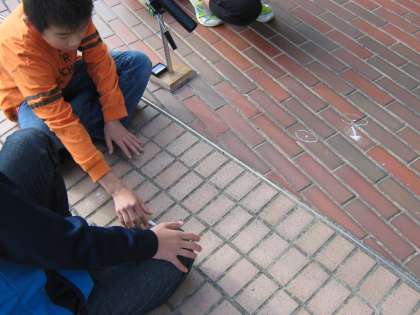 最後は屋外に設置したぼうばかりで,予想した太陽の動きを確認します。