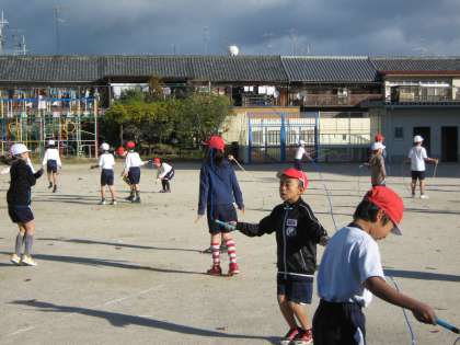 持久走大会が12月にあります。3年生は,体育で縄跳びと5分間走を交代で学習しています。寒さの中でも頑張って走っている子どもたちの元気な姿を見ると見ている側も元気になります。