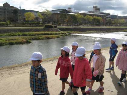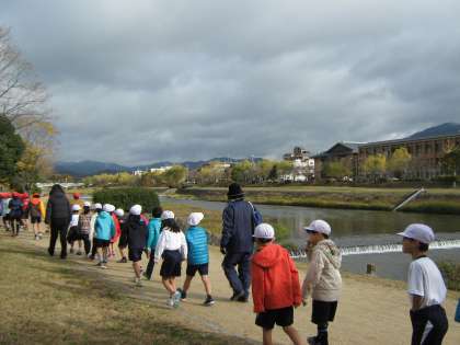 今年は,鴨川の西側にコースが移ります。コースを歩きながら確かめました。朝から冷え込んだ天気でしたが,元気に歩きました。