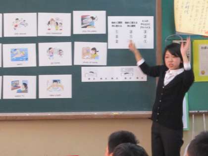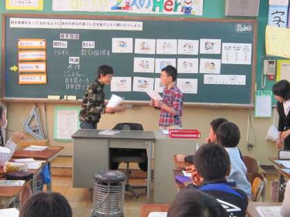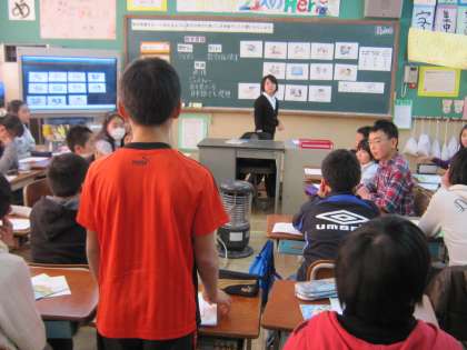 この時間は、英語活動の授業研究の時間でもありました。校内の教員が子どもたちの活動を通してたくさんのことを学びました。少し緊張していた子どももいたかもしれませんが、子ども先生も笑顔でがんばっていました。
