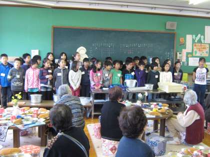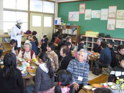 地域の方に本校の4年1組の児童と一緒に,「すこやか給食」を楽しんでいただきました。今日は寒い一日でしたが,参加された皆さんはお元気のようでした。4年1組の児童から歌のプレゼントをしました。