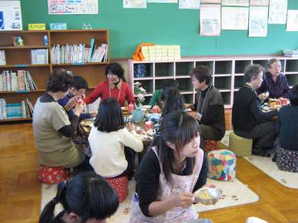「すこやか給食」では,子どもたちと同じ今日の献立での給食を食べてもらっています。パンとかぶらのクリームシチューと野菜のソティーという献立でしたが,地域の皆さんもたくさん食べていらっしゃいました。