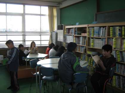 図書室でたくさんの児童が本を読んでいました。