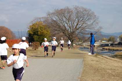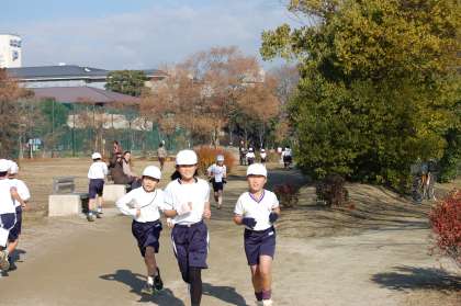 だいたい60分(6年生)の時間走なので,ペース配分が難しいですが,頑張って走っています。
