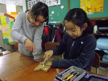 4年生では彫刻刀を使って木版画をしていきます。