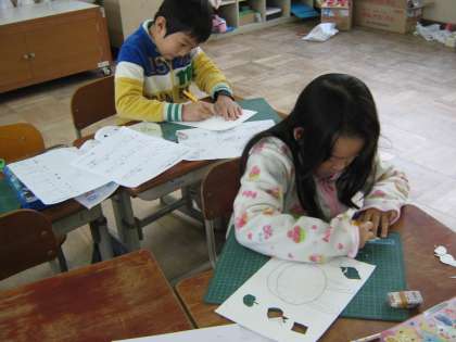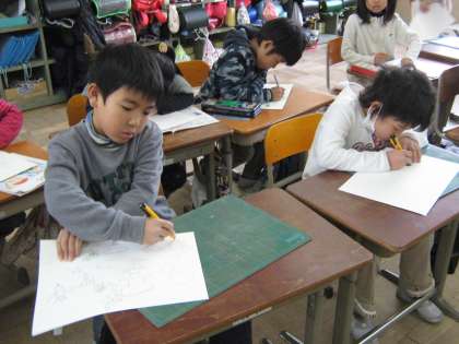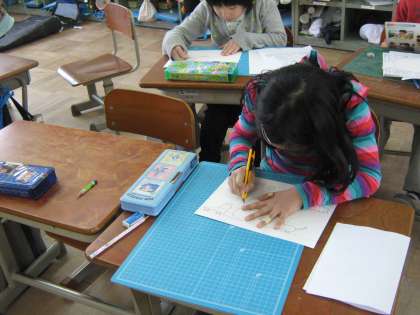 2年生は今回の図工で,カッターを使いました。刃先が出すぎないように注意し,また,利き手と反対の手の置き場所に注意しながら,学習に取り組みました。けがをする人も出ず良かったです。