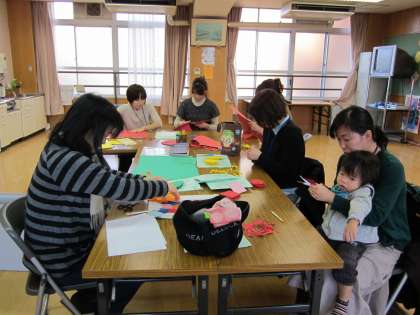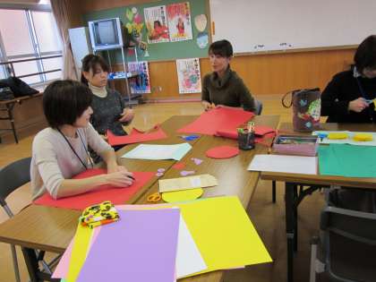 花や葉,顔のパーツなどを色画用紙で何枚も何枚も作っていただきました。どれだけ助かったことでしょう!実はそれでもできあがらず、持ち帰って作ってくると言ってくださった方もおられます。本当に感謝!感謝!です。