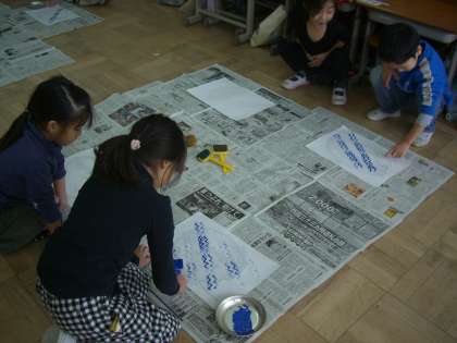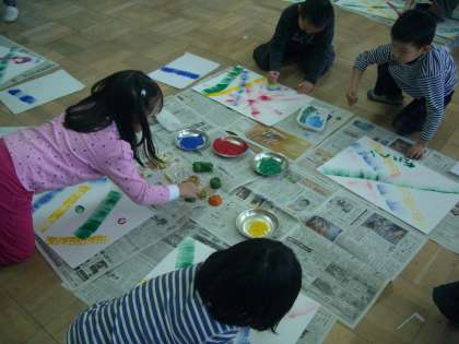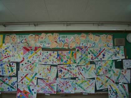 先日から取り組んできた図工「いろいろぺったん」の作品が完成しました。うつした形をもとに,さらにすてきな作品になるようパスで描き加えました。途中,活動の様子を見て回っていると,「先生!○○さんの色きれい!」「○○さん,こんなんしてはる!」と子どもたち。友だちの作品のすてきなところをどんどん教えてくれました。時間が終わるころには,どの子もすてきな作品を完成させ,満足そうな顔をしていました。材料の準備等ご協力いただきありがとうございました。