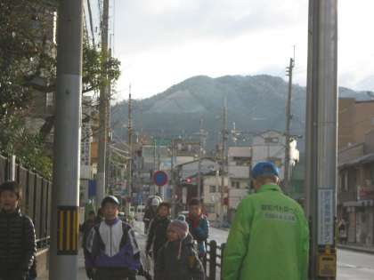 冷え込んだ朝を象徴するように,大文字山の「大」の字が雪で浮き出るような感じでした。京都ならではの景色ですね。