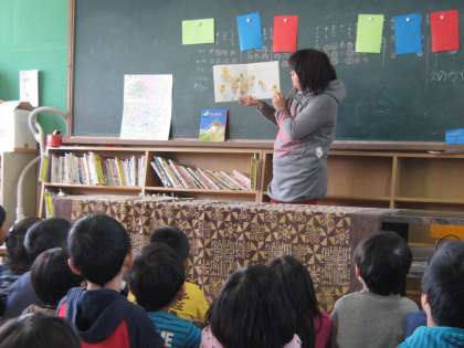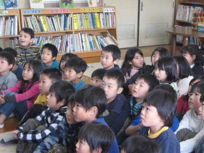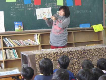 ネズミの家族が魚釣りに出かけます。「この時期に?」と思ったら,氷に穴をあけてのワカサギ釣りのお話でした。初めに「釣りに行ったことがある人?」という問いかけがあったので,すーっと話に入って行ったようです。