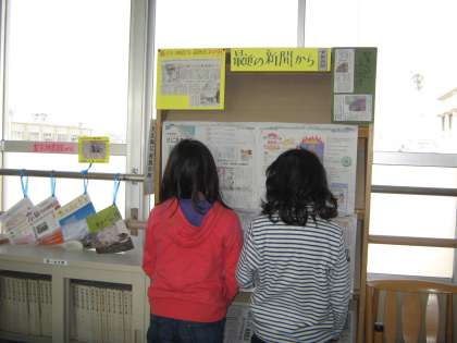 読書週間で,図書室に来ることに親しみが持てたからでしょうか。図書室に来て,本を読んだり友だちと話をしたりして過ごす人が増えています。また,新聞の切り抜きが掲示されていて,最近のニュースにも親しむことができます。