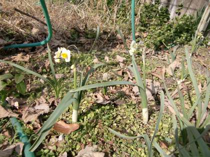 一所懸命スケッチする1年生の視線の先に…スイセンの花