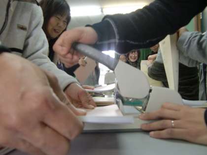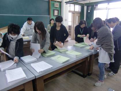 放課後,25日の研究発表会用の冊子づくりを教職員全員でしました。どんなことでも,みんなでする作業は楽しいものです。大人も子どもも同じです。