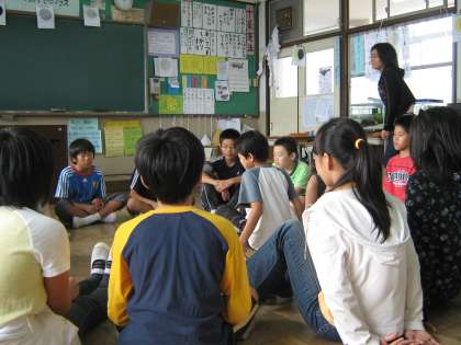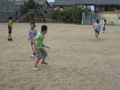 今日の午後より,前期のがんばりをみんなでたたえて,「お楽しみ会」をしました。初めに司会の子たちが初めの言葉を言い,次は「ハンカチ落とし」をしました。そのあとに「絵しりとり」をしました。いずれも室内の係の子たちが手際よくルール説明をしてくれたおかげで,スムーズに楽しくできました。その後,運動場に移動して,「リレー」,「キックベース」をしました。「リレー」では,子どもたちが考えた「リレー」の後,担任の提案で,サイコロの目によって走り方を変えるという,みんなが楽しめるリレーをしました。「横向き走り」や「後ろ向き走り」,「きんちゃん走り」に「10回まわって走る」という目も作りました。いずれも勝敗関係なくとても楽しめました。最後に「キックベース」です。男子対女子でしました。係の子どもが面白いアイデア(男子は1アウト交代,走るのはケンケン走り,など)を考えてくれたおかげで,男子も女子も意欲的に活動できました。