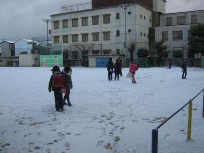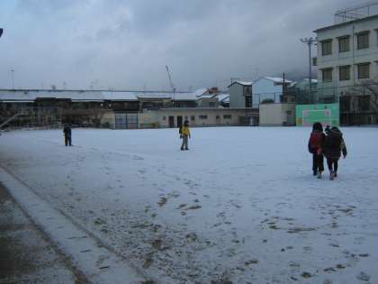登校してくる子どもと運動場をのぞくと,一面雪で真っ白でした。