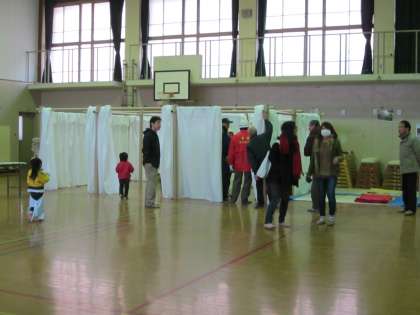 避難所についてのDVD上映,避難所での間仕切りの展示,吉田自主防災が大臣賞を受賞された時の表彰状の展示がありました。