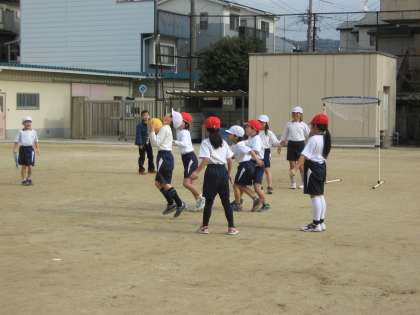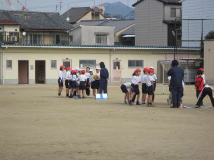 先週まではパスの練習でしたが,今日からゲーム形式で行いました。チームごとに前半でる人,後半でる人,得点係などを決めて楽しくできました。