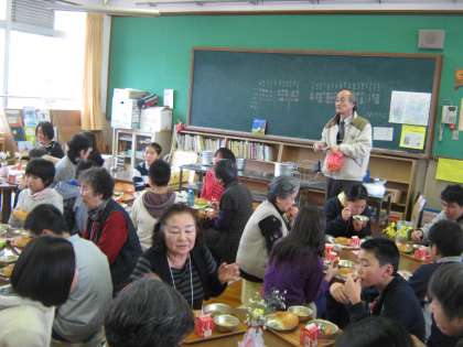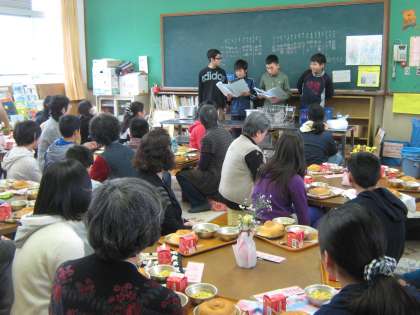 また地域の方が,給食についてわからないことがあり,困っておられると,すぐに近くの席の子どもが手伝いをしている場面も見られました。はじめは恥ずかしそうにしていた子どもたちでしたが,相手を思いやってすぐに行動することができ,「かっこいいな」と思いました。
