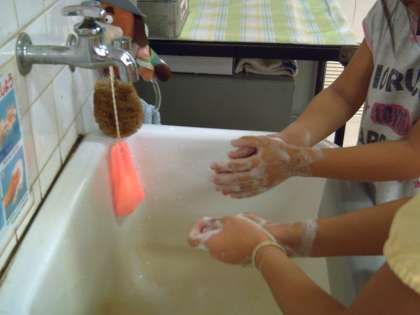 * 遊んだあと・食事の前・外から帰った後には石けんで手を洗う。