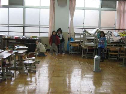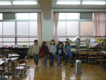 日本語教室で,学習の終わりに,日本の遊びを紹介しました。「はじめの一歩」いわゆる,「だるまさんがころんだ」です。1枚目は「はじめの一歩!」と大きな声で言って,スタートする所です。2枚目は,オニの指導者にタッチして逃げたところです。ルールを知っていれば,短時間の遊びの時間でもみんなと楽しく過ごせると思います。