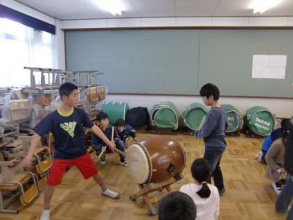 久しぶりに和太鼓部活をのぞきに行きました。やっぱり,6年生はサマになっています。