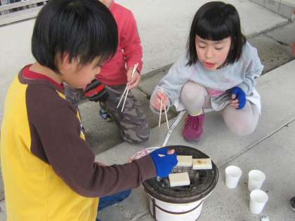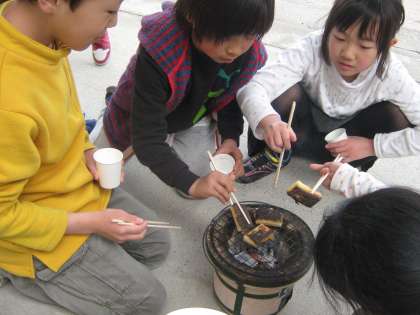 おもちを焼いて,さあ食べるぞ!! のショットです。満足そう。