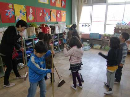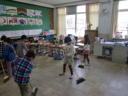先生と一緒にみんなで楽しく掃除するというのが基本形です。